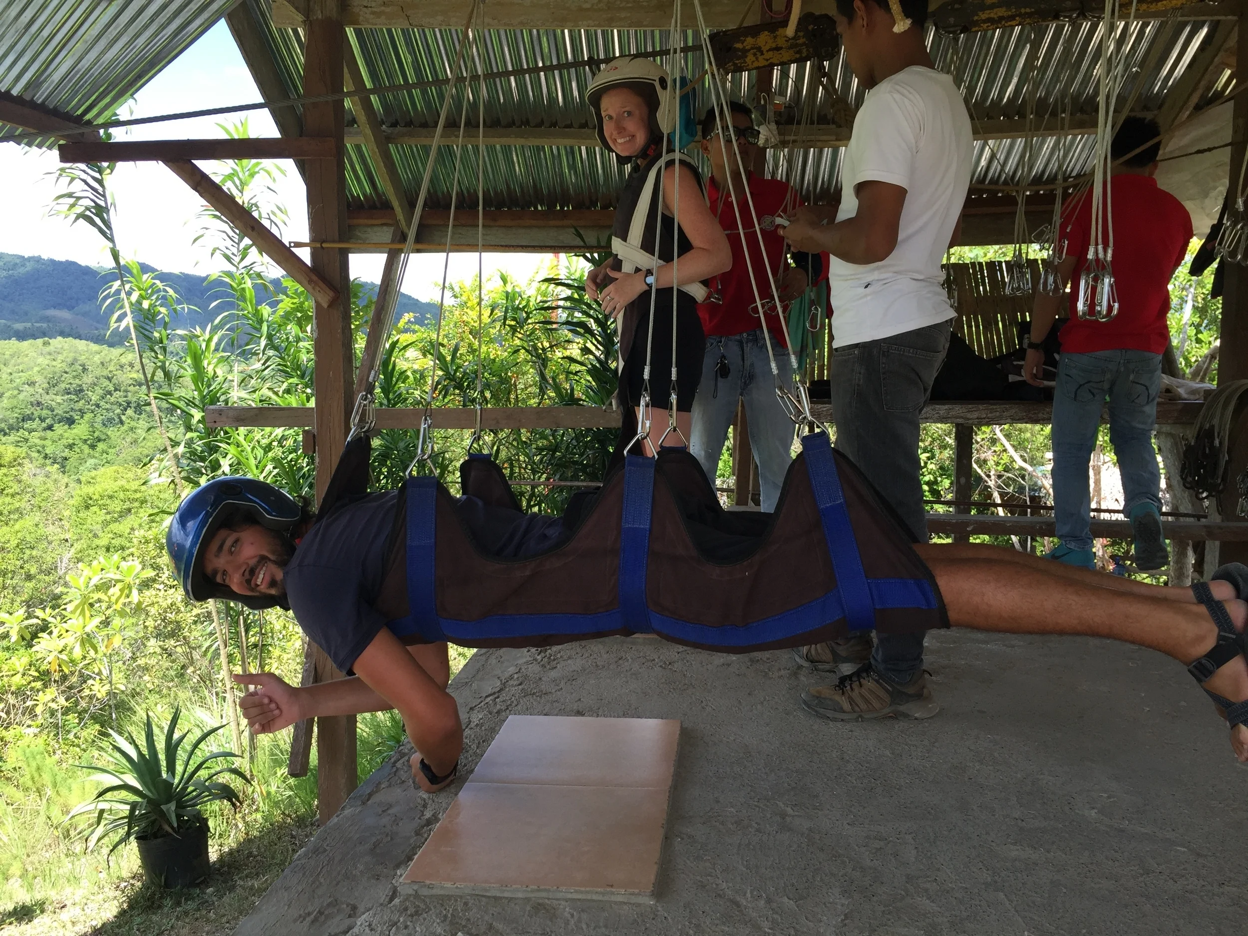 We zipped across a line traversing a half-kilometer gap between mountains, looking straight down at the rocky river 200 m below. We stumbled across a rickety bamboo bridge before stopping to see butterflies and moths (that one's a letdown - skip it!). For lunch, we partook in a buffet of Philippine foods served on a slow moving riverboat.